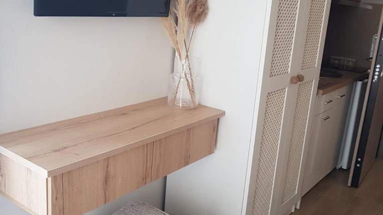 Die klimatisierten Studios in den CONMARI LUXURY STUDIOS bieten Ihnen einen komfortablen Rückzugsort mit modernen Annehmlichkeiten. Jedes Studio verfügt über einen Balkon, auf dem Sie die frische Luft und die Aussicht genießen können. Zur Ausstattung gehören auch ein Flachbild-TV und ein eigenes Badezimmer mit einer Dusche und kostenfreien Pflegeprodukten. Eine voll ausgestattete Küchenzeile mit Kühlschrank, Kochfeld, Kaffeemaschine und Wasserkocher ist ebenfalls vorhanden.
