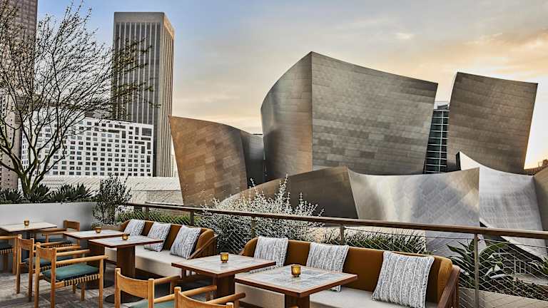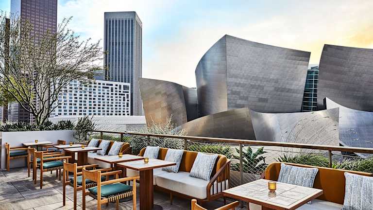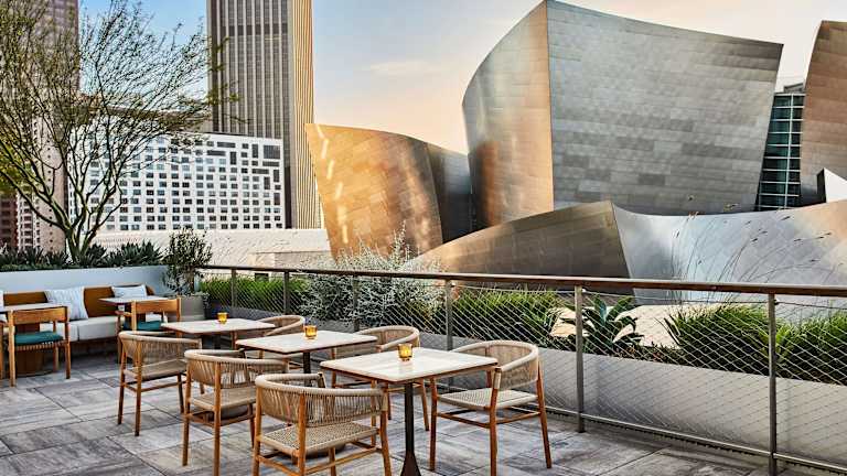 Die gastronomischen Einrichtungen des Conrad Los Angeles umfassen zwei Nichtraucherrestaurants sowie eine Bar und eine Lobbybar. Es werden verschiedene Gerichte zu den Hauptmahlzeiten angeboten, und es stehen vegetarische und glutenfreie Optionen zur Verfügung.