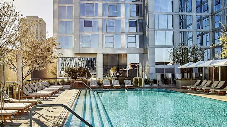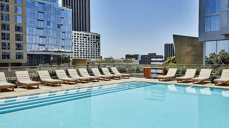 Das Conrad Los Angeles bietet klimatisierte Zimmer und ist mit einer Terrasse sowie drei Pools ausgestattet: Kinderbecken, Indoor- und Outdoor-Pool. Zu den Serviceleistungen gehören eine rund um die Uhr besetzte Rezeption, Zimmerservice sowie eine Gepäckaufbewahrung. Es werden zudem verschiedene Annehmlichkeiten wie ein Safe, ein Geldautomat und ein Minimarkt angeboten.