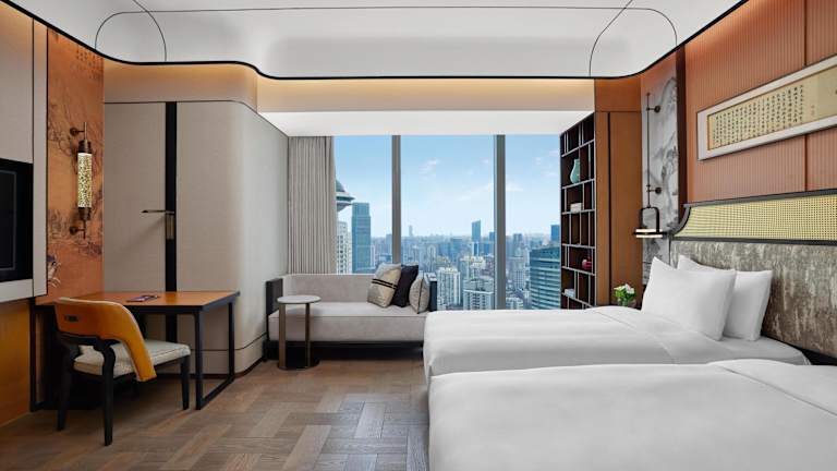 Die Zimmer im Conrad Shanghai sind elegant eingerichtet und bieten einen atemberaubenden Blick auf die Stadt Shanghai durch bodentiefe Fenster. Die Zimmer verfügen über eine großzügige Sitzecke und geräumige Marmorbadezimmer. Jede Einheit ist mit einer Badewanne, Bügeleisen/-brett und einer Minibar ausgestattet.