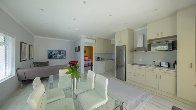 Unser Standort: Constantia zählt zu den nobelsten Stadtteilen von Kapstadt. Die liebliche Landschaft lässt vergessen, dass man sich mitten in einer Großstadt befindet. Die Villen sind von parkähnlichen Gärten umgeben, manche haben auch Pferdekoppeln und Weingärten. Unsere Cottages liegen kaum 2 km entfernt von den Shopping Centres „Constantia Village“ und „Constantia Emporium". Zahlreiche gute bis exzellente Restaurants befinden sich in unserem direkten Umfeld. Infrastruktur: - Einkaufszentren in direkter Nähe (z.B. Constantia Village, Constantia Emporium, Blue Route Mall) - Tankstellen (3x max. 2km entfernt) - Bahnhof (3km entfernt) In unserer weiteren Umgebung: Constantiaberg Hospital (900m), Steenberg Golfkurs (8-9km), West Lake Golf Club (10-11km), Kirstenbosch Botanische Gärten (5-6km), Cecilia Forest/Table Mountain Contour Path (8-9km), Sportwissenschaftliches Institut (8-9km), Virgin Active Fitness-Studio (2-3km), Newlands Rugby & Cricket Stadion (8-9km), Constantia Valley Weinstraße (2-3km), weltberühmte Kap-Weinstraßen in den Winelands (z.B. Stellenbosch, 45km), erstklassige Restaurants “gerade um die Ecke herum” gelegen, V&A Waterfront (Victoria & Alberts Waterfront, 25km), Muizenberg Strand (15km), Kalk Bay (18km) und Simons Town (25km), Tafelberg Seilbahn (25km), 25 Minuten Autofahrt zum Cape Town International Flughafen.