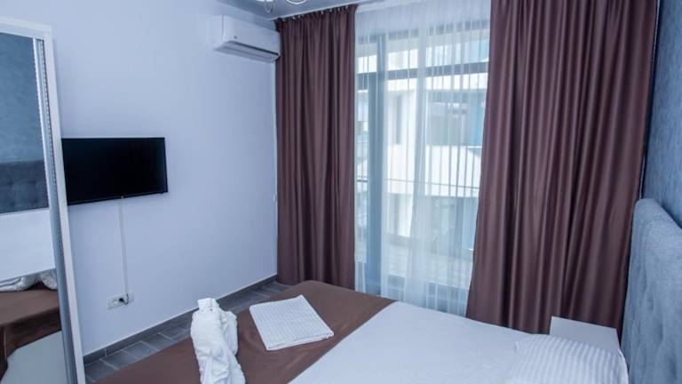 Die Unterkunft befindet sich in Mamaia Nord – Năvodari, nur 100 m vom Strand Mamaia entfernt. Die Marina Regia ist 2,2 km entfernt. Der Siutghiol-See liegt 7,2 km weit weg, während das Einkaufszentrum City Park Mall 13 km entfernt ist. Der nächstgelegene Flughafen, Mihail Kogălniceanu, ist 19 km von der Unterkunft.