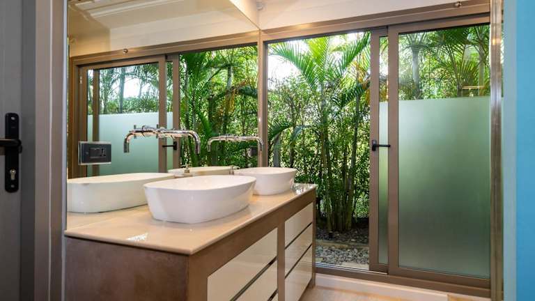 Die Villa ist klimatisiert und verfügt über ein Wohnzimmer, eine voll ausgestattete Küche mit Kühlschrank und Kaffeemaschine sowie 4 Badezimmer mit Dusche und Haartrockner. Handtücher und Bettwäsche werden bereitgestellt.