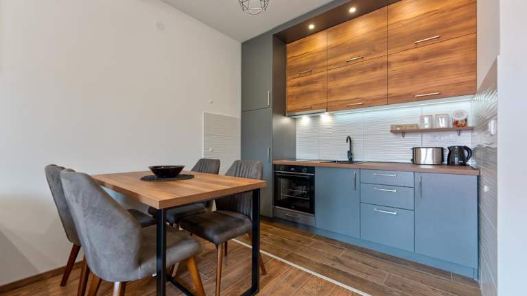 Die Unterkunft verfügt über ein Schlafzimmer, ein Wohnzimmer, einen Flachbild-TV und eine gut ausgestattete Küche mit Kühlschrank und Ofen. Das Badezimmer ist mit einer Dusche ausgestattet.