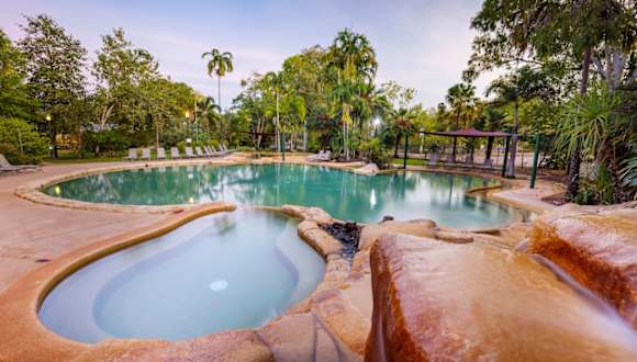 Cooinda Lodge Kakadu is a tranquil oasis in the heart of Kakadu National Park, offering the region’s most extensive range of accommodation options. Whether you’re seeking the comfort of luxury villas, quality lodge rooms, or campsites, Cooinda provides a relaxing base for your Kakadu adventure. The lodge features two shaded swimming pools, perfect for cooling off after a day of exploring, as well as both alfresco and indoor dining options that showcase fresh, locally inspired cuisine. Additional amenities include a fuel station, a well-stocked general store for travel essentials, and easy access to the Warradjan Cultural Centre, where you can gain insights into the rich cultural heritage of the local Aboriginal people. Guests can also embark on a variety of guided experiences, with highlights such as the world-famous Yellow Water Cruises, offering unforgettable views of Kakadu’s pristine wetlands and abundant wildlife. Cooinda Lodge is the perfect destination to immerse yourself in the beauty, culture, and adventure of Kakadu.