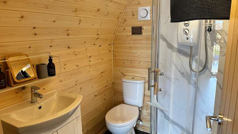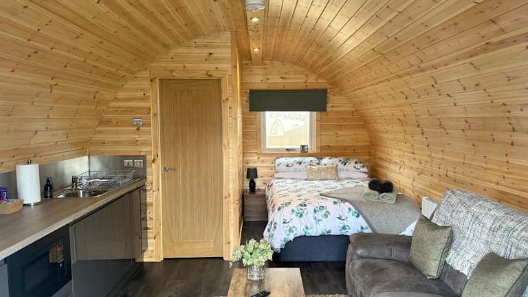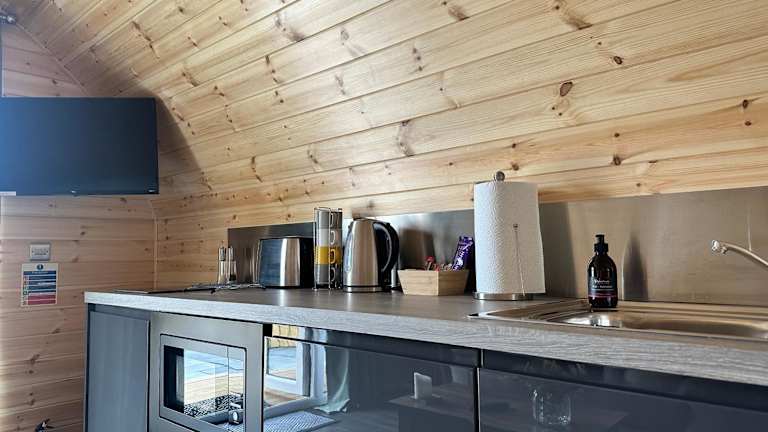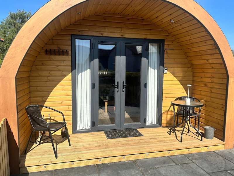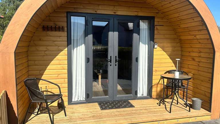 Coolsythe Pod bietet Übernachtungsmöglichkeiten in einer Ferienwohnung, die mit einem Garten, einer Gemeinschaftslounge und kostenlosem WLAN ausgestattet ist. Die Unterkunft verfügt über eine Veranda und eine Terrasse mit Bergblick.