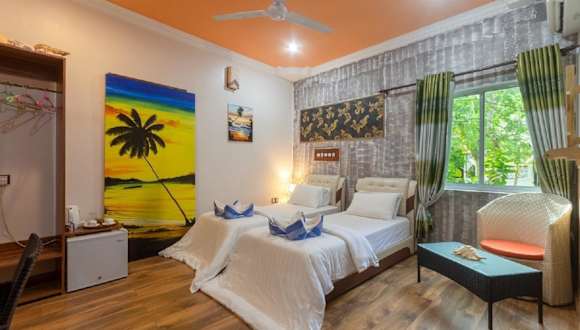 Die Coral Queen Villa in Ukulhas bietet Unterkünfte in direkter Strandlage und umfasst verschiedene Einrichtungen wie einen eigenen Strandbereich, einen Garten, eine Gemeinschaftslounge sowie eine Sonnenterrasse. Zu den Dienstleistungen zählen eine rund um die Uhr besetzte Rezeption, Flughafentransfers, Zimmerservice und kostenloses WLAN.
