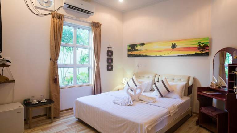 Die klimatisierten Zimmer der Coral Queen Villa sind mit einem Kleiderschrank, Wasserkocher, Minibar, Safe, Flachbild-TV sowie einem eigenen Badezimmer mit Bidet ausgestattet. Bettwäsche und Handtücher werden bereitgestellt.