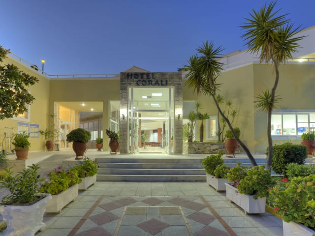 Hotel Corali is situated in a quite area, 1.8 klm from the resort of Tigaki and 400 m. from long sandy beach. Hotel consists of a main building and bungalows set in a beautiful surrounding of well kept gardens. Hotel is refurbished annually and is well cared for. The reception is in the main building, and at the lobby area you can find a TV corner as well luggage storage. There is also a fully air-conditioned restaurant with open veranda and a roof garden bar to enjoy your evenings, watching the sunset whilst enjoying a refreshing cocktail. WIFI internet access available at all hotel premises free of charge. There is a pool bar at each pool area. At the Village area you will find also a snack bar /taverna where you can taste our delicious Greek dishes. A mini market with a souvenir shop and rent-a-bicycle shop are also available. There are two fresh water swimming pools and a separate children's pool and whirl pool at the hotel for your entertainment. Next to the pools there are also children's playgrounds. You can keep fit in our fitness room or on the tennis court { hard surface and flood-lit- with charge} or playing table tennis, mini golf or on the grass volley ball court. Also billiards and darts {with charge}. Water sports are available at the local beach of Tigaki, with charge. Every 2 weeks you can enjoy live music with folklore dancers and once a week, disco evening.