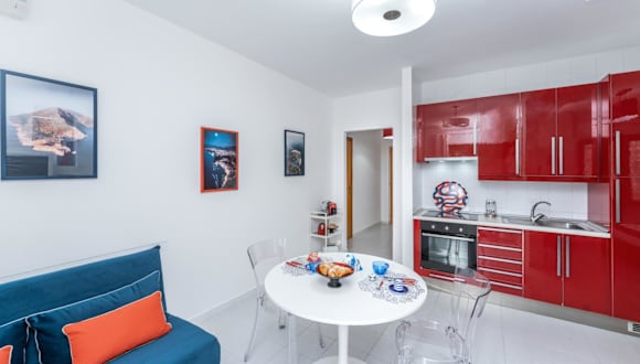 Die Ferienwohnung umfasst 1 Schlafzimmer, ein Wohnzimmer sowie eine voll ausgestattete Küche mit Kühlschrank und Kaffeemaschine. Das Badezimmer ist mit einem Bidet und einer Dusche ausgestattet. Handtücher und Bettwäsche sind ebenfalls vorhanden. Die Wohnung ist klimatisiert.