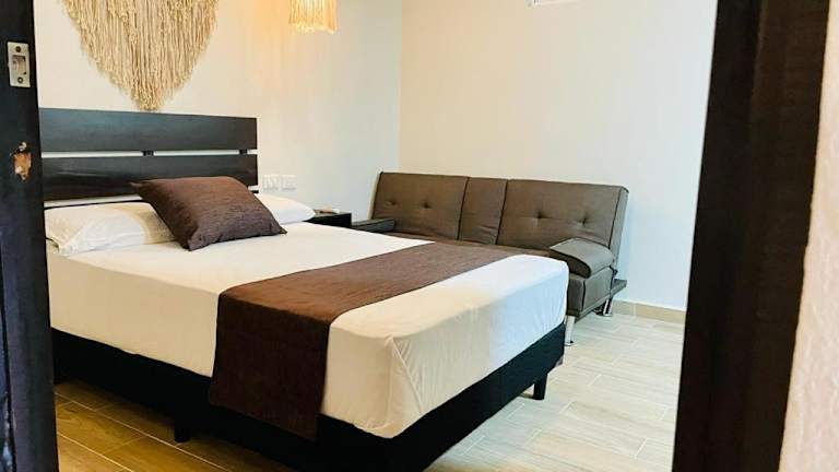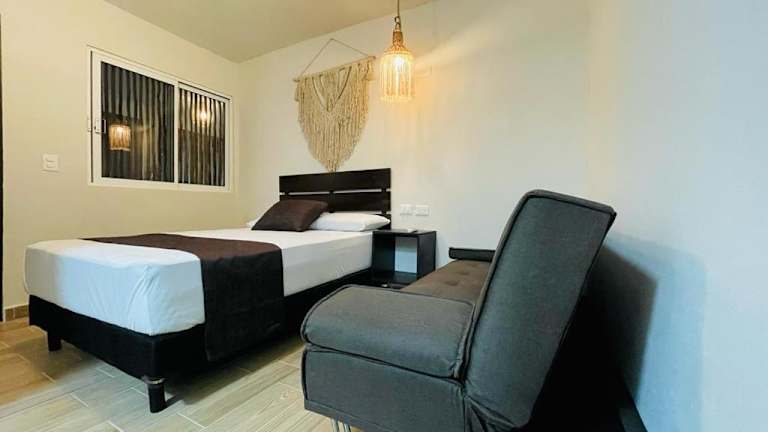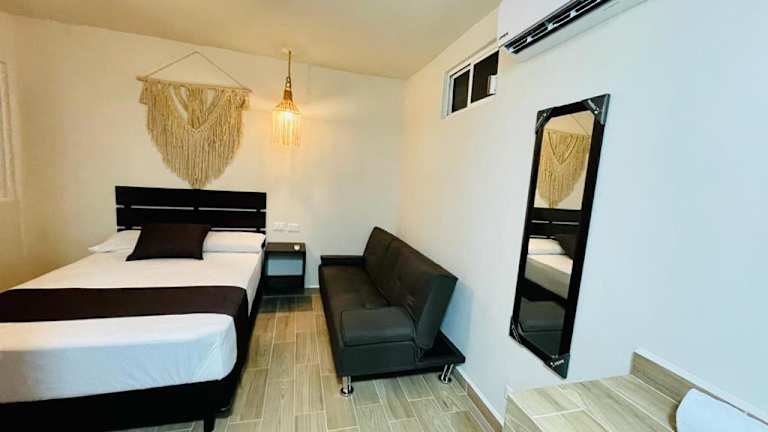 Das Hotel Corazon de Tulum bietet eine ideale Lage in Tulum, nur wenige Gehminuten von verschiedenen Sehenswürdigkeiten entfernt. Mit kostenlosem WLAN in allen Bereichen und freundlichem Personal an der 24-Stunden-Rezeption steht einem angenehmen Aufenthalt nichts im Wege. Die Zimmer sind gemütlich eingerichtet und verfügen über ein eigenes Bad sowie einen Flachbild-TV. Entdecken Sie die Schönheit von Tulum und erkunden Sie die umliegenden Naturwunder wie die Cenote Dos Ojos und die Ruinen von Coba.