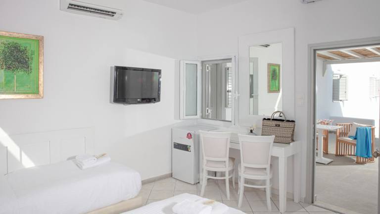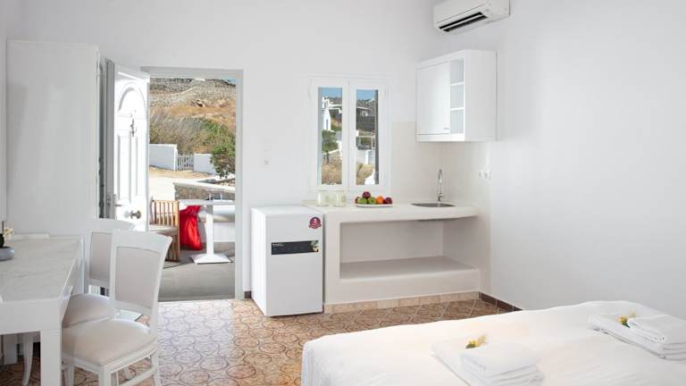 Die Unterkunft liegt in Mykonos Stadt, nur 300 Meter vom Strand Korfos entfernt. Zu den nahegelegenen Sehenswürdigkeiten gehören der Strand Ornos und Fabrica Square. Der nächstgelegene Flughafen ist der Flughafen Mykonos, welcher sich 4 Kilometer von der Unterkunft entfernt befindet.