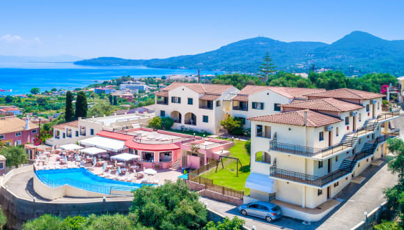 Unser Hotel liegt in ruhiger Lage am Hang oberhalb von Moraitika. Zum Ortszentrum sind es ca. 200m mit Tavernen, Bars und Einkaufsmöglichkeiten. Zum flach abfallenden Sand-/Kiesstrand sind es ca. 500m und zur Linienbushaltestelle mit Anbindung an Korfu-Stadt ca. 250 m.