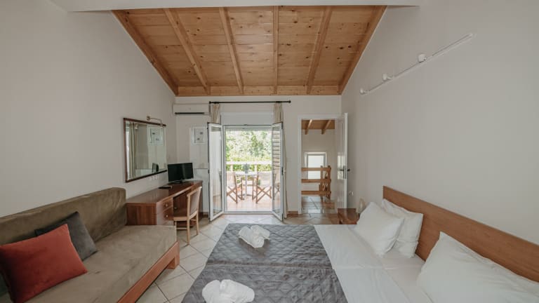 Die Zimmer sind mit Klimaanlage, einem Schreibtisch, einem Flachbild-TV, einem eigenen Badezimmer sowie Bettwäsche und Handtüchern ausgestattet. Jedes Zimmer verfügt über eine Terrasse mit Gartenblick. Einige Zimmer bieten eine Küche, die mit einem Kühlschrank, einem Ofen und einer Mikrowelle ausgestattet ist. Alle Gästezimmer sind zudem mit einem Safe versehen.
