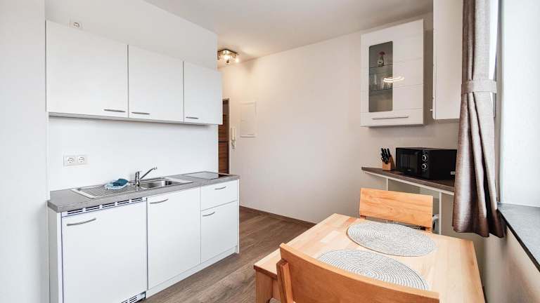Die Ferienwohnung umfasst ein Schlafzimmer, einen Flachbild-TV mit Kabelkanälen, eine gut ausgestattete Küche mit Kühlschrank und Mikrowelle sowie ein Badezimmer mit Dusche. Handtücher und Bettwäsche werden bereitgestellt. Allergikerfreundliche Zimmer sind verfügbar.