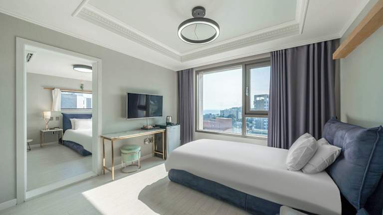 Das Cornerstone Hotel in Seogwipo bietet eine günstige Lage im Zentrum der Stadt und ist die perfekte Wahl für Reisende, die eine komfortable Unterkunft suchen. Mit kostenfreiem WLAN und Privatparkplätzen bietet das Hotel alle Annehmlichkeiten, die Sie für einen angenehmen Aufenthalt benötigen. Entspannen Sie auf der Terrasse, genießen Sie Snacks in der hauseigenen Snackbar und nutzen Sie die Gemeinschaftslounge. Die Zimmer sind klimatisiert und verfügen über einen Flachbild-Kabel-TV sowie ein eigenes Badezimmer mit kostenfreien Pflegeprodukten. Von einigen Zimmern aus haben Sie einen herrlichen Blick auf die Stadt. Das Hotel bietet auch ein Businesscenter und Wäschemöglichkeiten, um Ihren Aufenthalt so bequem wie möglich zu gestalten. Die Umgebung bietet viele Freizeitaktivitäten wie Wandern, Angeln, Radfahren und Strandbesuche. Entdecken Sie auch die nahe gelegenen Attraktionen wie das Jeju Jungmun Resort und das Alive Museum Jeju. Der internationale Flughafen Jeju ist nur 41 km entfernt, sodass Ihre Anreise zum Hotel bequem ist.
