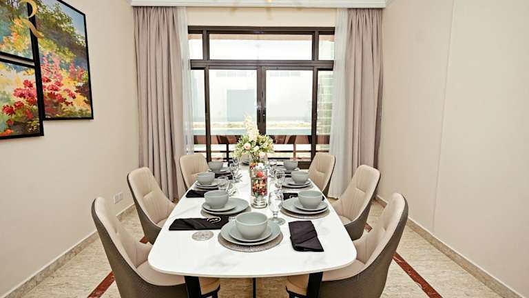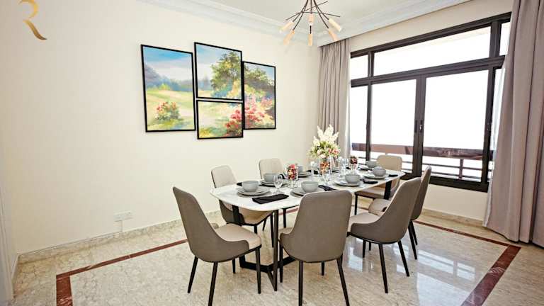 Corniche Allure - Spacious & Cozy 3BR Family Home bietet eine großzügige und gemütliche Umgebung für Familienurlaube. Die Unterkunft umfasst 3 separate Schlafzimmer und ist für bis zu 6 Personen geeignet. Sie verfügt über eine voll ausgestattete Küche und eine private Terrasse. Die Region ist als Nichtraucherzone gekennzeichnet und es sind keine Junggesellen/-abschiede gestattet, was eine ruhige Atmosphäre gewährleistet.