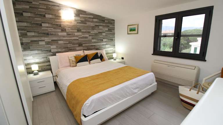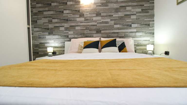 Die Ferienwohnung umfasst zwei Schlafzimmer, ein Wohnzimmer und ist mit einer voll ausgestatteten Küche ausgestattet, die einen Kühlschrank und eine Kaffeemaschine beinhaltet. Des Weiteren gibt es ein Badezimmer mit Bidet und Dusche sowie einen Flachbild-TV.
