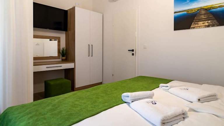 Die Corte Villas & Apartments - AE1043 befinden sich in Privlaka, einer charmanten Küstenstadt in Kroatien. Die Unterkunft liegt nur 100 m vom Strand entfernt, so dass Sie bequem das kristallklare Wasser und den feinen Sand genießen können. Auch ein Geschäft ist nur 30 m entfernt, so dass Sie alles Notwendige für Ihren Aufenthalt bequem besorgen können. Die Umgebung bietet viele Möglichkeiten für Aktivitäten im Freien, wie zum Beispiel Wassersport, Radfahren oder Wandern. Der Flughafen Zadar ist nur 30 km entfernt und gut erreichbar.