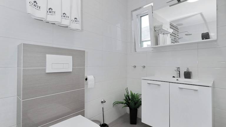 Die Corte Villas & Apartments - AE1043 in Privlaka bieten Ihnen eine ideale Unterkunft für einen entspannten Urlaub. Mit einem beheizten Außenpool und einer möblierten Terrasse können Sie hier die Sonne und das angenehme Klima Kroatiens genießen. Die Apartments sind modern und klimatisiert, mit kostenfreiem WLAN und allen Annehmlichkeiten, die Sie für einen Selbstversorgerurlaub benötigen. Die Nähe zum Strand und zu einem Geschäft machen die Lage der Unterkunft besonders praktisch. Nutzen Sie die Möglichkeit, im Garten oder auf der Sonnenterrasse zu entspannen, und profitieren Sie von den kostenlosen Parkplätzen vor Ort. Der Flughafen Zadar ist ebenfalls gut erreichbar, nur 30 km entfernt.