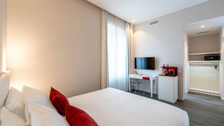 Die klimatisierten Zimmer sind ausgestattet mit einem Schreibtisch, einer Kaffeemaschine, einem Kühlschrank, einer Minibar, einem Safe, einem Flachbild-TV und einem eigenen Badezimmer mit einem Bidet. Einige Zimmer verfügen über einen Balkon, und alle Zimmer sind mit einem Wasserkocher sowie Bettwäsche und Handtüchern ausgestattet.