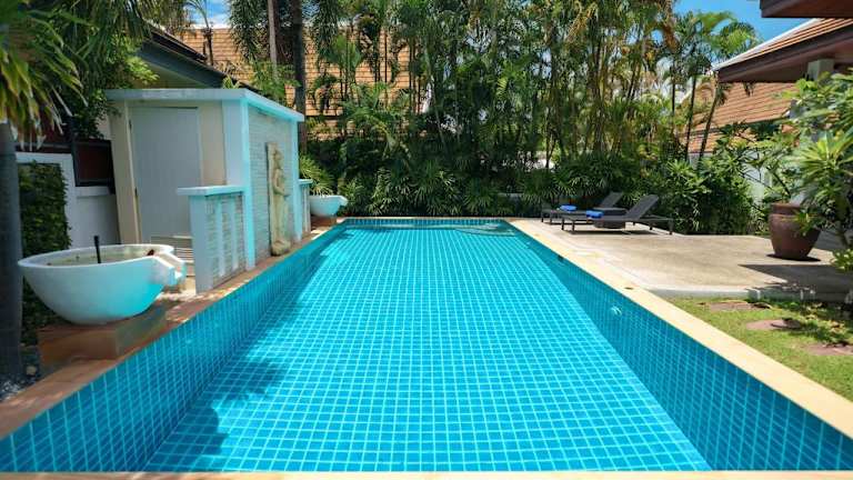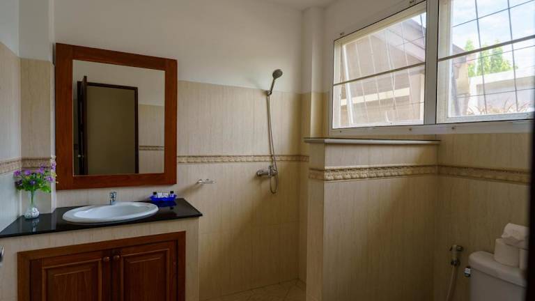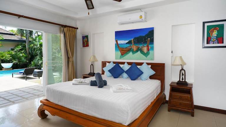Die Villa umfasst 2 Schlafzimmer und 2 Badezimmer sowie Bettwäsche und Handtücher. Weitere Annehmlichkeiten sind ein Flachbild-TV mit Satellitenempfang, ein Essbereich, eine voll ausgestattete Küche und eine Terrasse mit Blick auf den Pool.