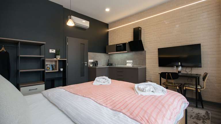 Jede Wohneinheit verfügt über ein eigenes Badezimmer mit Dusche, Klimaanlage, Flachbild-TV und Kühlschrank. In der Küche finden die Gäste eine Mikrowelle, eine Herdplatte, einen Toaster sowie einen Wasserkocher.