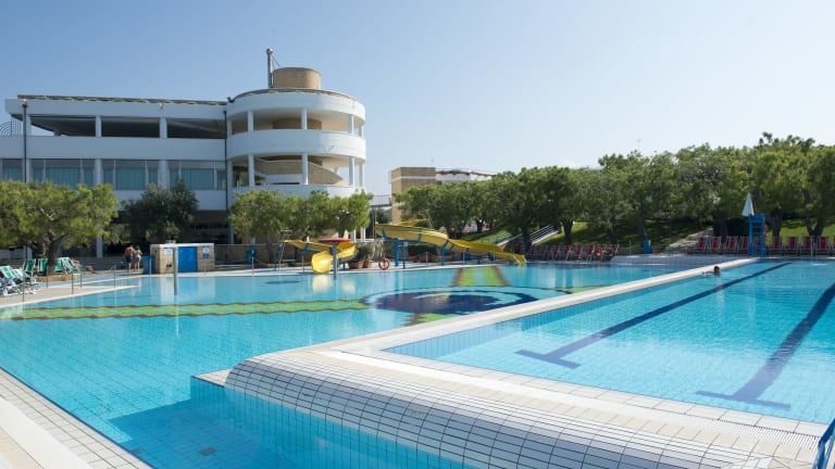 Das Hotel bietet eine Vielzahl von Sport- und Freizeitmöglichkeiten. Es gibt zwei Außenpools, in denen Sie schwimmen und sich erfrischen können. Für Kinder gibt es einen separaten Kinderpool. Darüber hinaus können Sie Radfahren, Tennis spielen, Beachvolleyball spielen, tauchen, im Fitnessstudio trainieren, Tischtennis spielen und an Aerobic-Kursen teilnehmen. Das Hotel bietet auch ein Animationsprogramm für Unterhaltung und Spaß.