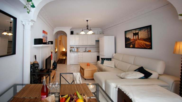 Die Ferienwohnung verfügt über ein Schlafzimmer, ein Wohnzimmer mit einem Flachbild-TV mit Satellitenkanälen, eine vollständig eingerichtete Küche mit Kühlschrank und Geschirrspüler sowie ein Badezimmer mit Dusche. Handtücher und Bettwäsche werden bereitgestellt.
