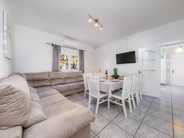 Das Ferienhaus bietet fünf Schlafzimmer, zwei Badezimmer und ist ausgestattet mit Bettwäsche, Handtüchern und einem TV mit Satellitenkanälen. Es umfasst eine voll ausgestattete Küche sowie einen Balkon mit Blick auf die Stadt.