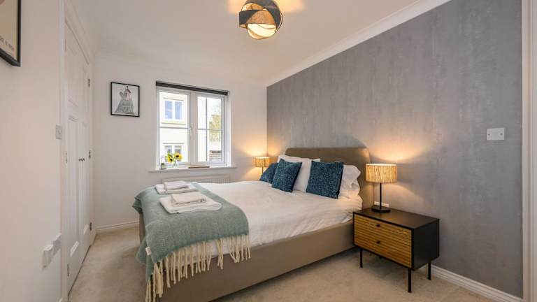 Die Ferienwohnung umfasst zwei Schlafzimmer, ein Wohnzimmer, eine voll ausgestattete Küche mit Kühlschrank und Wasserkocher sowie ein Badezimmer mit Dusche und kostenlosen Pflegeprodukten. Handtücher und Bettwäsche werden ebenfalls bereitgestellt.