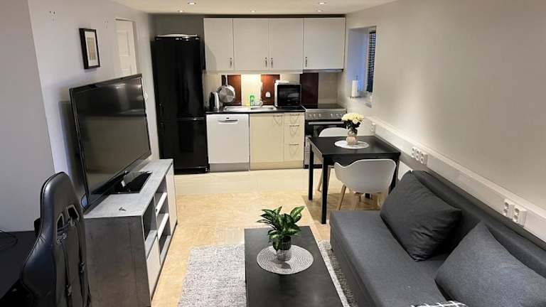 Die Ferienwohnung bietet eine moderne und gemütliche Ausstattung mit einem Garten und kostenlosem Privatparkplatz. Sie wird von einem privaten Gastgeber verwaltet und ist als Nichtraucherunterkunft konzipiert. Die Ankunft ist zwischen 16:00 und 23:00 Uhr möglich, während der Check-out von 01:00 bis 12:00 Uhr erfolgt. Junggesellen- oder Junggesellinnenabschiede sind nicht gestattet.