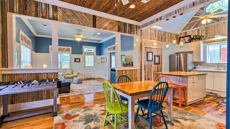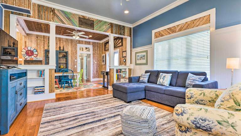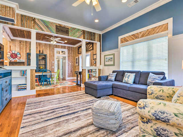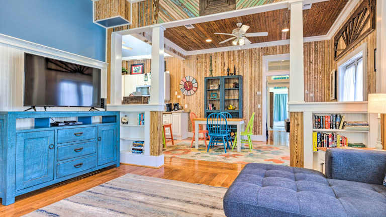 Das Cottage with Porch - 3 Min Walk to Bay St Louis in Bay Saint Louis ist ein gemütliches Ferienhaus, das sich in einer idealen Lage befindet, um die Umgebung zu erkunden. Mit drei Schlafzimmern, einer voll ausgestatteten Küche und einem Wohnzimmer mit Flachbild-Kabel-TV bietet es den Gästen allen Komfort, den sie für einen angenehmen Aufenthalt benötigen. WLAN ist ebenfalls kostenlos verfügbar. Die Unterkunft liegt in der Nähe von verschiedenen Sehenswürdigkeiten, darunter der Diamondhead Country Club, der West Side Park und der Hafen von Gulfport.