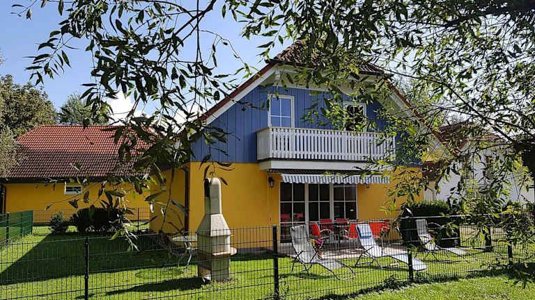 Cottages at the Kummerower See Verchen bietet Übernachtungsmöglichkeiten mit Zugang zu einem Garten und einer Terrasse mit Gartenblick.
