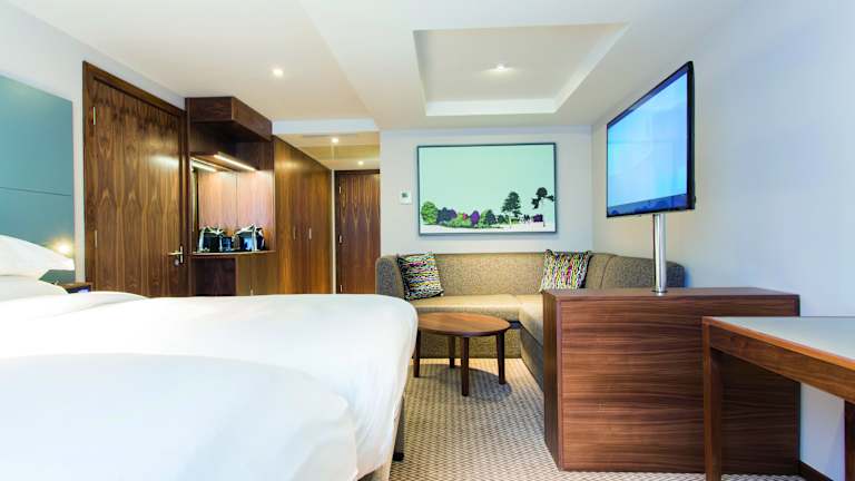 Die Zimmer sind modern eingerichtet und bieten eine Klimaanlage sowie individuell regulierbare Heizung. Die Ausstattung umfasst ein Doppelbett oder Sofabett, Minibar, Kühlschrank, Tee-/Kaffeemaschine sowie ein Bügelset. Weiterhin sind eine Telefonanlage, ein TV-Gerät mit Satellitenempfang, Internetzugang und hochwertig ausgestattete Badezimmer mit Dusche und Badewanne vorhanden. Rollstuhlgerechte Zimmer sind ebenfalls verfügbar.
