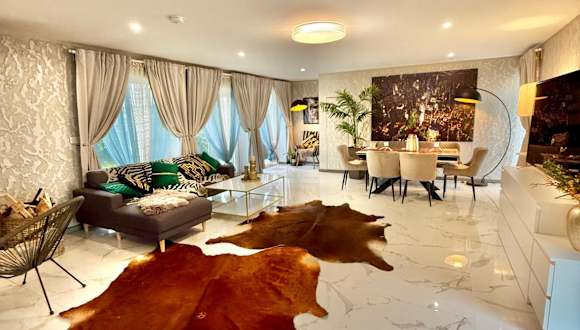 Das Ferienhaus verfügt über drei Schlafzimmer und drei Badezimmer. Zur Ausstattung gehören Bettwäsche, Handtücher sowie ein Flachbild-TV. Ein Essbereich und eine voll ausgestattete Küche sind ebenfalls vorhanden, zusätzlich bietet die Unterkunft eine Terrasse mit Blick auf den Garten.