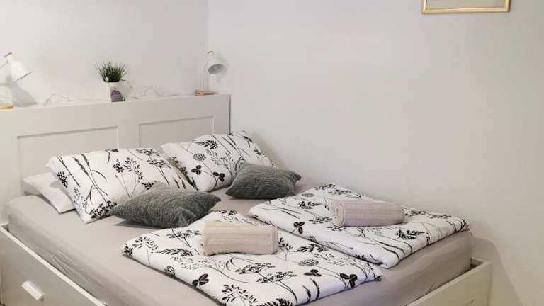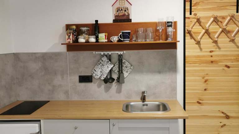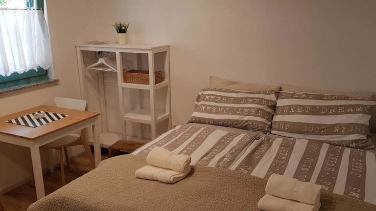 Die Ferienwohnung umfasst 1 Schlafzimmer, 1 Badezimmer, Bettwäsche, Handtücher, einen Flachbild-TV und eine voll ausgestattete Küchenzeile. Eine Terrasse mit Gartenblick gehört ebenfalls zur Ausstattung.