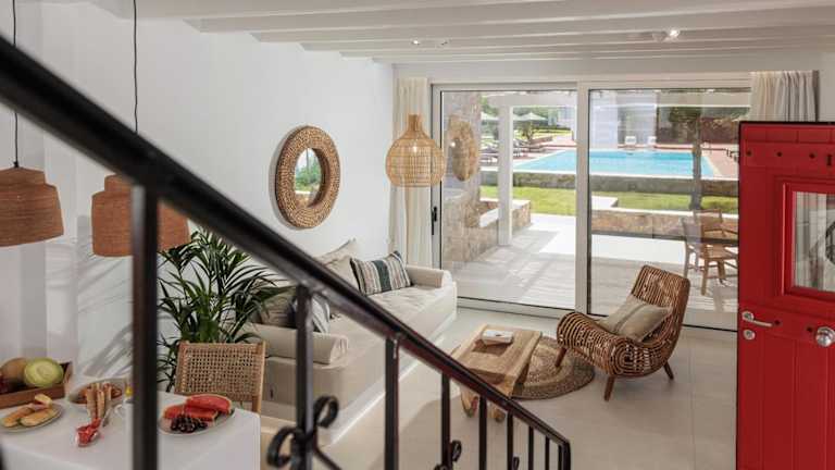 Die Country Villas befinden sich in einer günstigen Lage, nur 1 km vom beliebten Agios Prokopios Strand entfernt. Dieser wunderschöne Strand bietet feinen Sand und kristallklares Wasser und ist ideal zum Sonnenbaden und Schwimmen. In der Nähe der Villen finden Sie auch ein Restaurant und Supermärkte für Ihre Einkäufe. Die Stadt Naxos und der Hafen sind nur 4,5 km entfernt, während der Flughafen Naxos nur 1 km entfernt liegt.