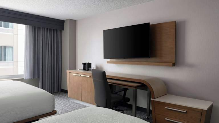 Die Zimmer im Courtyard Charlotte City Center sind modern und komfortabel eingerichtet. Sie verfügen über Annehmlichkeiten wie einen Flachbild-TV, eine Kaffeemaschine, ein Bügeleisen und einen Schreibtisch. Ein Haartrockner und kostenfreie Pflegeprodukte sind ebenfalls vorhanden.
