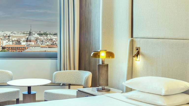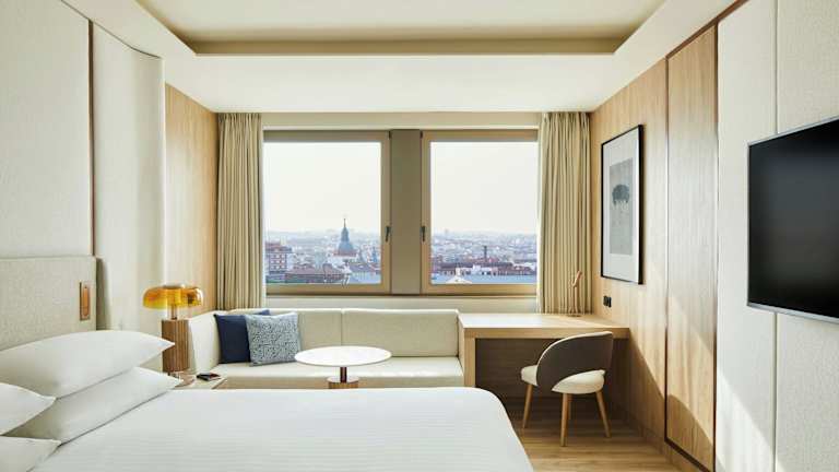 Die Zimmer im Hotel Princesa Plaza Madrid sind geräumig und bieten den Gästen eine komfortable Unterkunft. Die Zimmer verfügen über große Fenster, die viel Tageslicht hereinlassen, sowie über einen separaten Sitzbereich. Zur Ausstattung gehören auch eine Klimaanlage, Sat-TV und kostenfreies WLAN.