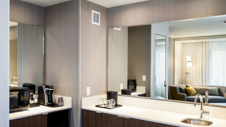 Im hoteleigenen Restaurant The Bistro-American können Sie klassische amerikanische Küche zum Frühstück und Abendessen genießen. Es gibt auch ein Café in der Lobby, das rund um die Uhr geöffnet ist.