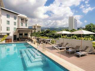 Das Courtyard by Marriott Kingston, Jamaica ist ein modernes Hotel in Kingston, das seinen Gästen einen angenehmen Aufenthalt bietet. Mit einem Außenpool, einem Fitnesscenter und einer Bar können Sie hier Ihren Urlaub in vollen Zügen genießen. Die klimatisierten Zimmer sind mit allen Annehmlichkeiten wie einem Flachbild-TV und einem eigenen Badezimmer ausgestattet. Das freundliche Personal an der 24-Stunden-Rezeption steht Ihnen jederzeit zur Verfügung. Der Flughafen Norman Manley International ist nur 20 km entfernt.