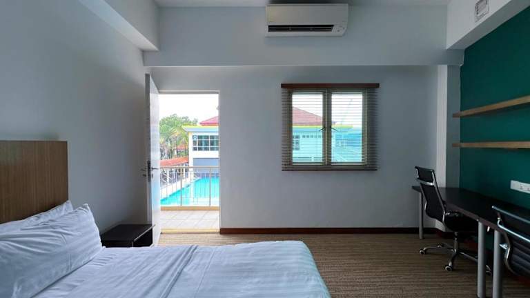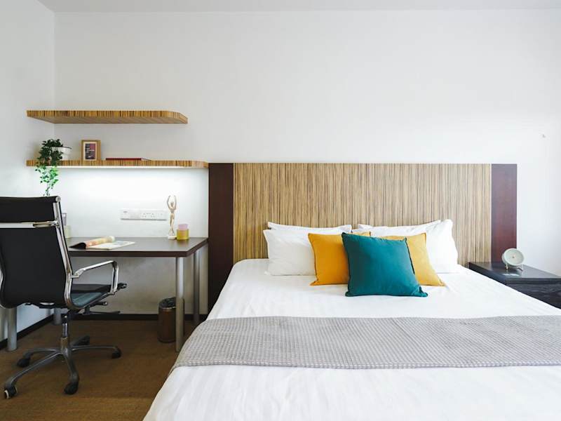 Die klimatisierten Wohneinheiten des Cove D'Arena sind mit eigenen Badezimmern, Flachbild-TVs, voll ausgestatteten Küchenzeilen und Balkonen ausgestattet. Diese umfassende Ausstattung garantiert einen komfortablen Aufenthalt.