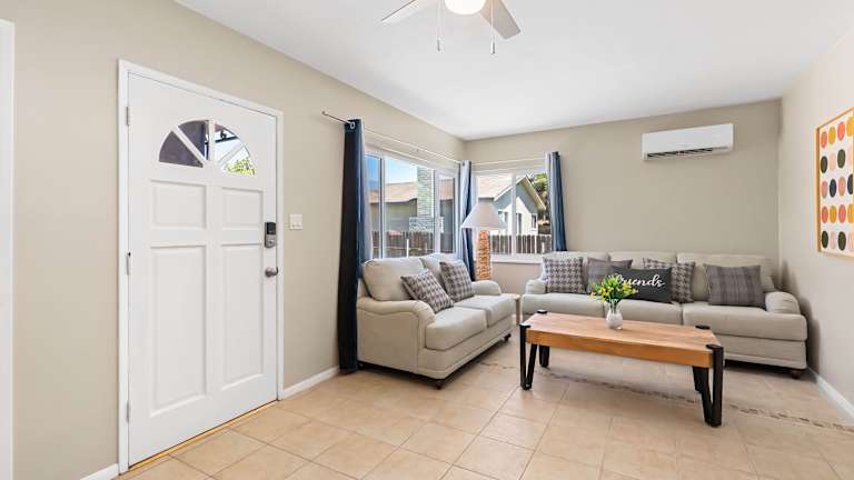 Das Cozy 2BR Home with Bright Interior & Relaxing Patio bietet Übernachtungsmöglichkeiten in einem klimatisierten Ferienhaus mit einer Veranda oder einem Patio. Die Unterkunft ist mit kostenlosem WLAN ausgestattet.