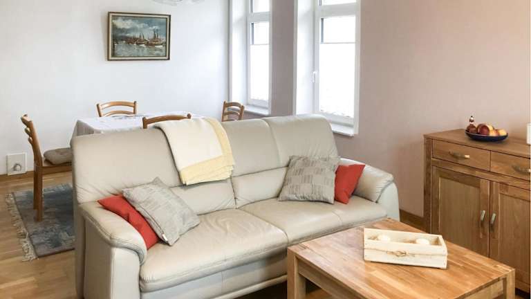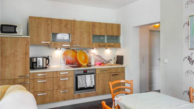 Die Ferienwohnung besteht aus 1 Schlafzimmer, einem Wohnzimmer und einer voll ausgestatteten Küche, die über einen Kühlschrank und eine Kaffeemaschine verfügt. Das Badezimmer ist mit einer Dusche sowie einem Haartrockner ausgestattet.