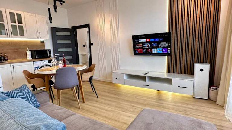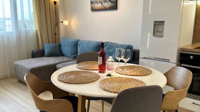 Verbringen Sie einen angenehmen Aufenthalt im Nice and New Apartment with a Balcony on the Black Sea in Varna City. Das klimatisierte Apartment bietet eine ideale Lage, nur wenige Kilometer von der Kathedrale von Varna entfernt. Genießen Sie die Annehmlichkeiten wie den Zugang zu einem Garten, einer Terrasse und einer 24-Stunden-Rezeption. Das Apartment verfügt über ein Schlafzimmer, ein Wohnzimmer, eine voll ausgestattete Küche und ein Badezimmer mit kostenlosen Pflegeprodukten. Zusätzlich gibt es einen Kinderspielplatz und die Möglichkeit, Fahrräder auszuleihen oder ein Auto zu mieten. Der Flughafen Varna ist nur wenige Kilometer entfernt und ein kostenpflichtiger Flughafentransfer wird angeboten.