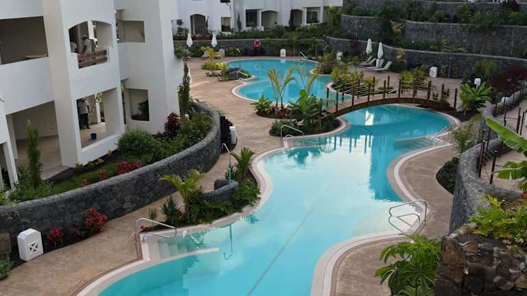 Das Cozy Apartment with Pools in Palm Mar bietet Ihnen einen erholsamen Urlaub in Palm-Mar. Genießen Sie den Außenpool, die Terrasse und das Restaurant sowie kostenfreies WLAN und einen wunderschönen Gartenblick. Das klimatisierte Apartment verfügt über ein Schlafzimmer, ein Wohnzimmer, eine voll ausgestattete Küche und zwei Badezimmer. Handtücher und Bettwäsche sind vorhanden und kostenfreie Privatparkplätze stehen zur Verfügung. Der Strand Arenita und das Aqualand sind in der Nähe und der Flughafen Teneriffa Süd ist gut erreichbar.