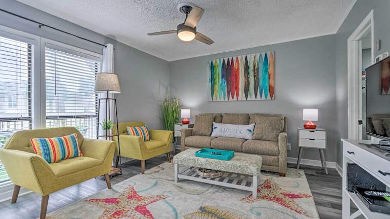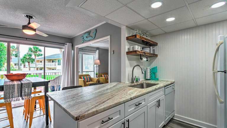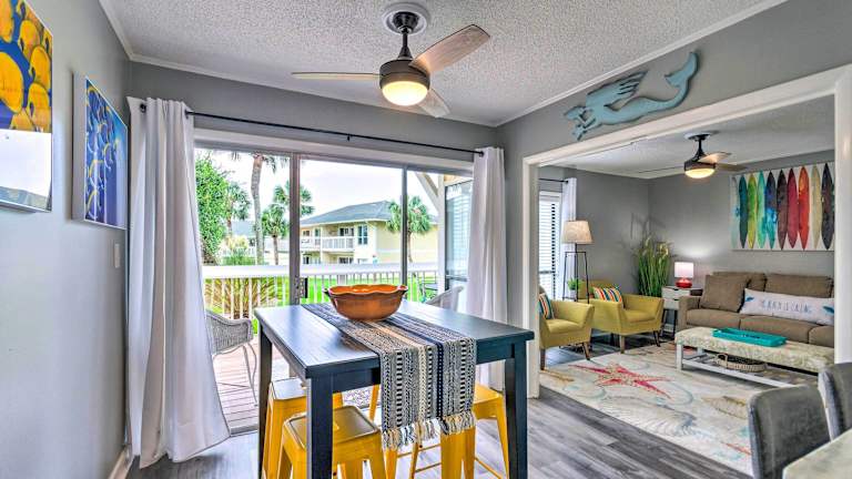 Das Apartment im Cozy Destin Condo with Patio about Half Mi to Beach verfügt über ein komfortables Schlafzimmer, in dem Sie sich nach einem langen Tag voller Aktivitäten ausruhen können. Das gemütliche Wohnzimmer ist mit einem Flachbild-Kabel-TV und einem DVD-Player ausgestattet, so dass Sie Ihre Lieblingssendungen oder Filme entspannt genießen können. Die voll ausgestattete Küche ermöglicht es Ihnen, Ihre eigenen Mahlzeiten zuzubereiten und bietet einen Kühlschrank zur Aufbewahrung von Lebensmitteln. Handtücher und Bettwäsche werden im Apartment gestellt, so dass Sie sich um nichts kümmern müssen.