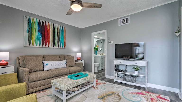 Das Cozy Destin Condo with Patio about Half Mi to Beach ist eine ideale Unterkunft in Destin, um einen entspannten Urlaub in Strandnähe zu verbringen. Das Apartment bietet ein gemütliches Schlafzimmer, ein komfortables Wohnzimmer mit Flachbild-Kabel-TV und DVD-Player sowie eine voll ausgestattete Küche. WLAN steht Ihnen in der gesamten Unterkunft kostenfrei zur Verfügung. Die Lage des Apartments ermöglicht es Ihnen, die Attraktionen von Destin, wie den Fort Walton Beach Park, Big Kahunas und das Destin History and Fishing Museum, bequem zu erreichen. Der Strand von Destin ist nur 400 m entfernt.