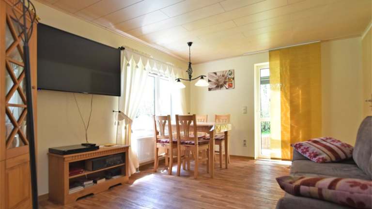 Das Ferienhaus umfasst 1 Schlafzimmer, ein Wohnzimmer mit TV, eine gut ausgestattete Küche mit Kühlschrank und Mikrowelle sowie ein Badezimmer mit Dusche. Handtücher und Bettwäsche werden bereitgestellt.